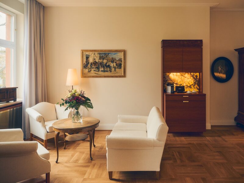 Ergänzt wird das Angebot durch zwei Junior-Suiten im Kavaliershaus vis-à-vis. Mit ihrer großzügigen Raumaufteilung schaffen sie einen Rückzugsort mit besonderer Privatsphäre.